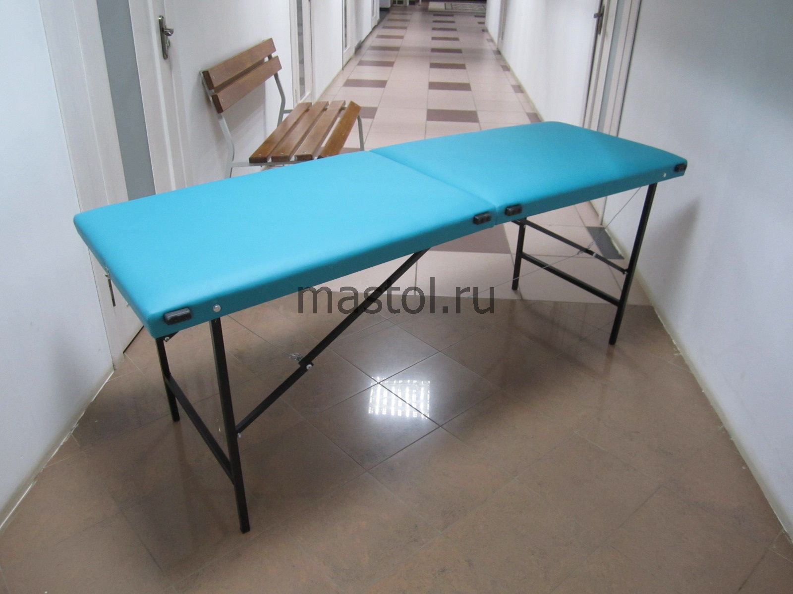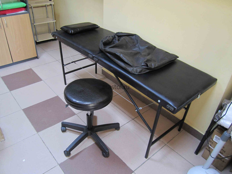 Стол массажный на крепких стальных ножках стандартного размера.